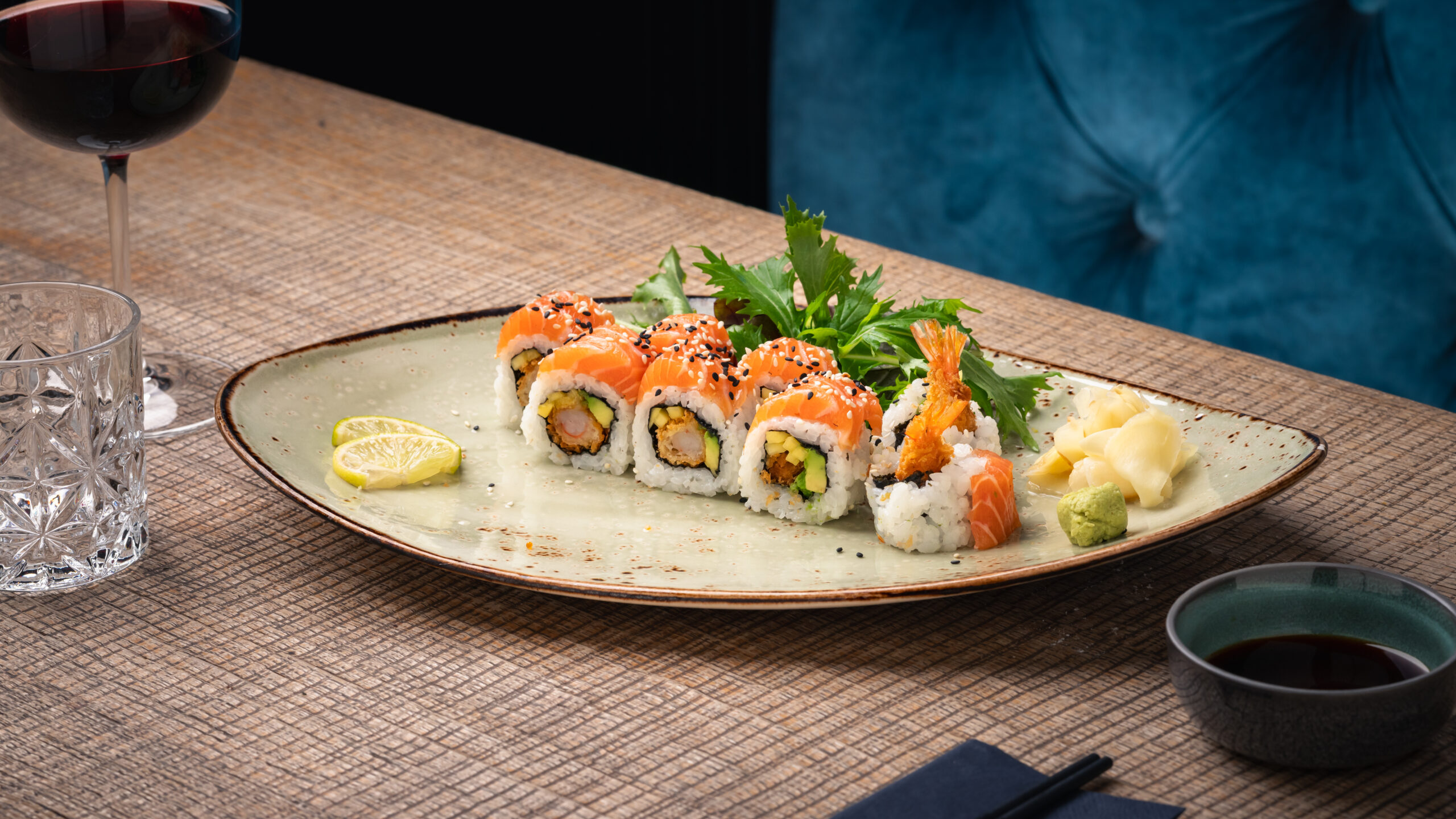 Tempura Lachs, Gurken, Philadelphia, ummatelt …