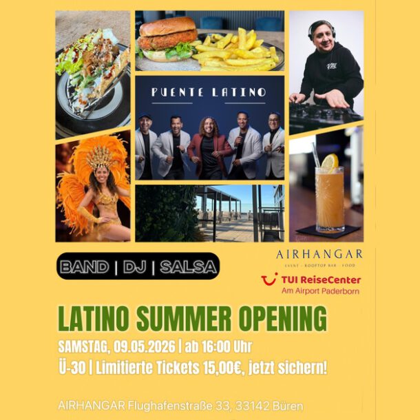 Am 09. Mai 2026 verwandelt sich der Air Hangar in eine pulsierende Latino-Oase voller Rhythmus, Leidenschaft und Sommer-Vibes.